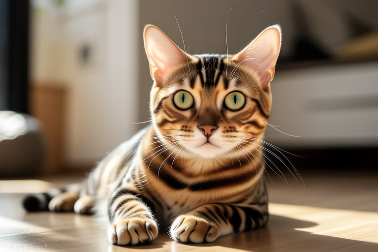 Distinctive facial features include wide-set eyes that come in shades of green, gold, or copper, giving them an expressive and intelligent appearance. Their ears are set wide apart, enhancing their alert and attentive look. The combination of these physical traits results in a cat that is not only visually appealing but also endearing in its presence.